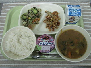 ツナとひじきのサラダ ぶどうゼリー 牛乳