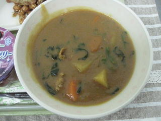 スピナッチカレー 大豆とごぼうの甘辛揚げ