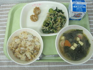 ビビンバ 焼売 ビビンバナムル わかめスープ 牛乳