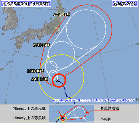 現在、台風20号が、日本の南海上にありゆっくりと北上しています。