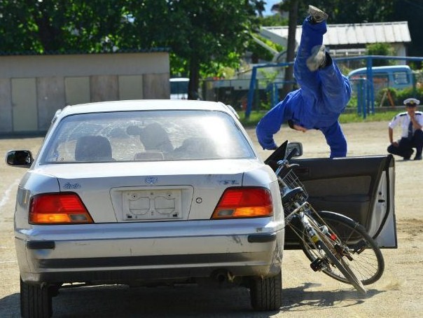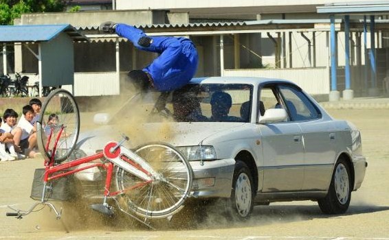 像を清水校長先生から頂いて作成したものです。スタントマンによる事故再現は、画像からもその恐