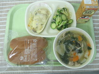 黒パン (新)鮭のクリームソースがけ わんたんスープ