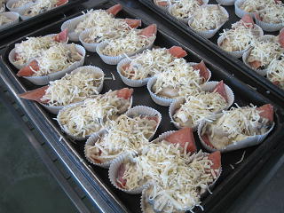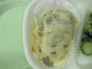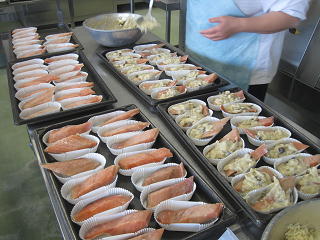 焼きます。チーズとホワイトソースの香りが給食室に広がり、