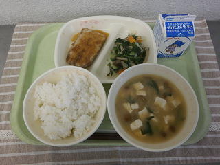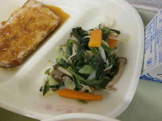 青菜ときのこのソテー なめこ汁 牛乳