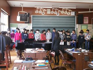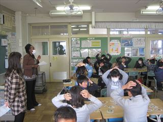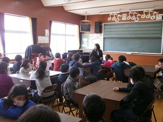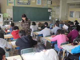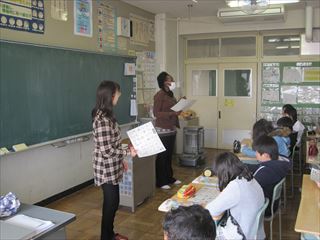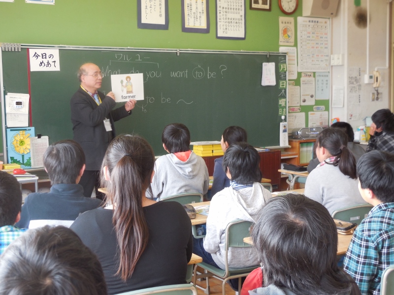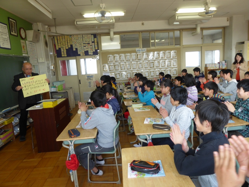 本校では、毎年「出前授業」と言って、八基・豊里両小学校へ中学校の教師が