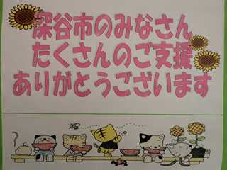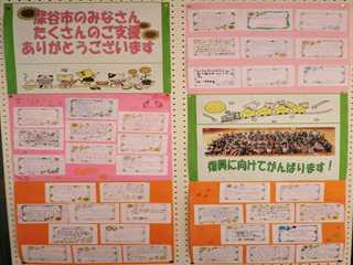 岩手県の田野畑小学校のみなさんからの手紙が、深谷市に届き、市内全小中学校に巡回しています。今週は、豊里中学校に届いています。児童のみなさんからの手紙には、「文房具をありがとうございます。」「復興にむけて頑張っています。」等々のメッセージが書かれてあります。現在、校内廊下に掲示してあります。(この手紙は、これまで市内のもくせい館に掲示してあったものです。) これからの厳しい冬に向かって、田野畑のみなさん頑張ってください。!深谷からも応援しています。