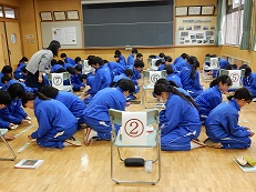 本日5時間目。2年生は1組・2組合同の百人一首大会が行われました。
