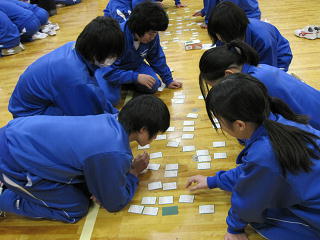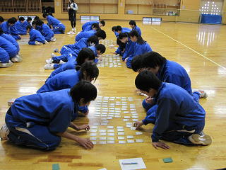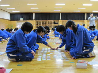 が行われました。選択国語の授業で学習してきた成果を発揮し,クラスで団結して臨みました。上の句が詠まれるとすぐに札を探し始められる生徒や,下の句が詠まれるのをじっと待っている生徒など,それぞれの力で精一杯戦うことができました。