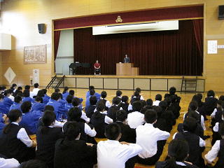 本日、歯科健診を実施しました。健診の前には、学校歯科医の河田典雅先生より、歯科講話をしていただき、ブラッシングの仕方や、むし歯の予防について、わかりやすく教えていただきました。
