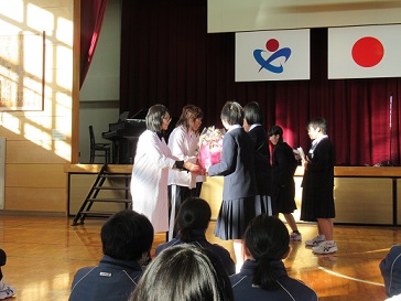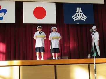 調理員さんも喜んでみてくださいました。日頃の感謝の気持ちを伝えられ、とてもいい集会になりました。