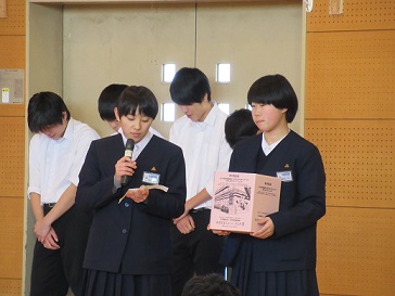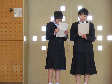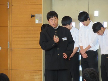 生徒会長から挙手WEEKの呼びかけがありました。豊中生、頑張っています!