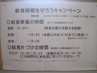 | 2016/06/13 | 給食の時間を守ろうキャンペーンが始まりました。 |  | by:給食室 |