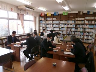13日(金)に八基小学校・図書室において、 第2回豊里中学校区幼・小・中学校