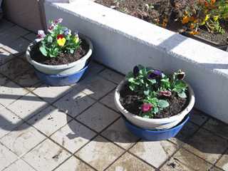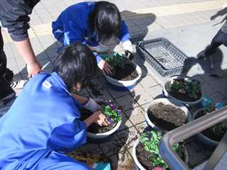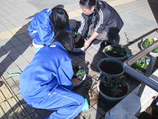 まずは、玄関前のプランターにパンジーを植えました。生徒と先生との共同作業です。短時間にきれいに植えてくれました。これから、来年春まで、