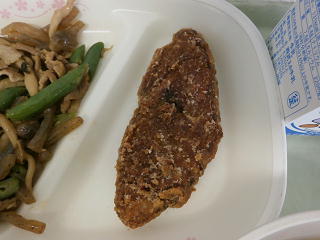 こんにゃくとしめじのピリ辛炒め 柏もち 牛乳