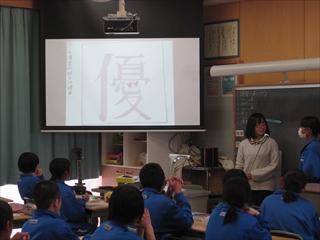 漢字の中から、一字を選び、その理由を教材提示装置を使って説明しています。