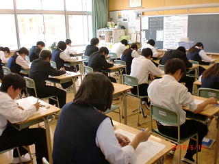 今日は中間テスト1日目です。生徒のみなさんはしっかり準備して、