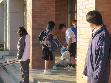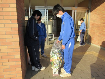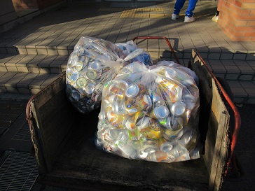 登校指導&いきいきDayの本日は、奉仕委員会のアルミ缶・エコキャップ回収日です。
