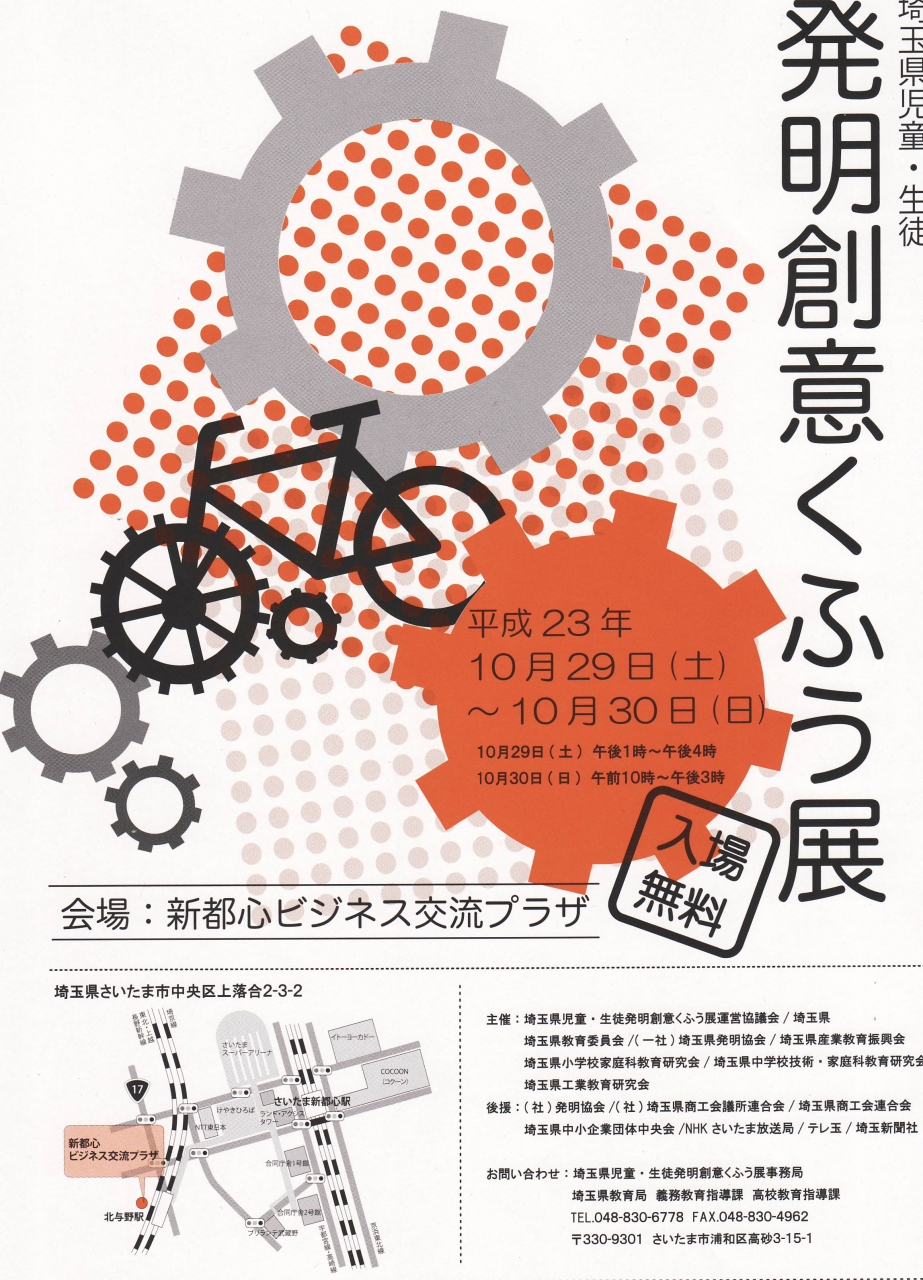 埼玉県児童・生徒「発明創意くふう展」の中央展が、10月29日~30日にさいたま市の新都心ビジネス交流プラザで開催されます。本校から、