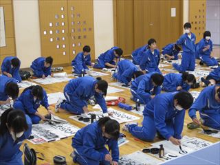 手本を見ながら、一字一字を丁寧に書いています。毎年この時期に各学