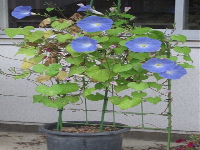 朝顔」があります。本校の用務員さんが、世話をしているものです。きれいに咲いていますので写真を掲載しました。「