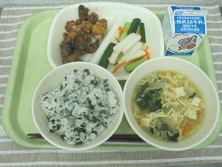 漬け物 かきたま汁 牛乳