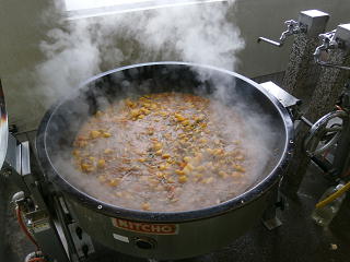 大きな回転釜いっぱいにつくります。ほぼ完食でした。