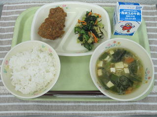 白飯 かつ 磯の香あえ 味噌汁 牛乳