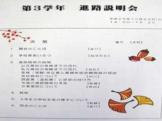 内容としては、三者面談や公立・私立校への出願から受検(受験)までや関係書類について、担当教
