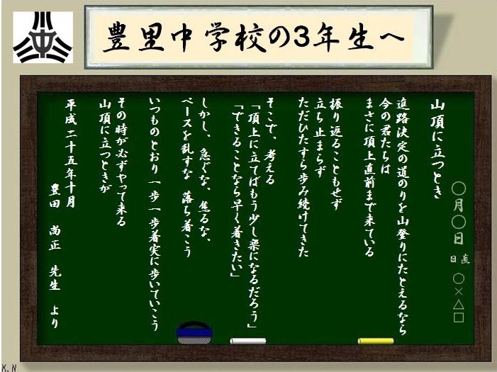 「山頂に立つとき」 豊田 先生より豊里中3年生へのメッセージ