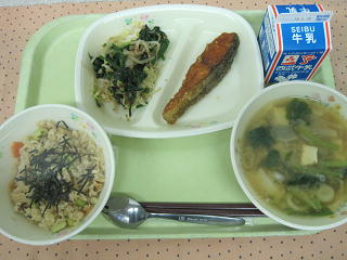 30日(水)の給食 鮭の竜田揚げ・たけのこご飯