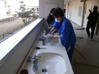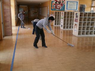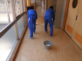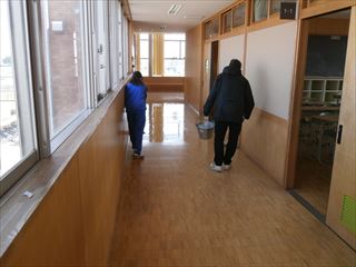 本日(25日)放課後、学年末ワックスがけの最後として、廊下と生徒
