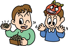豆は「魔滅(まめ)」に通じ、無病息災を祈る意味があります。昔、京都の鞍馬に鬼が出た