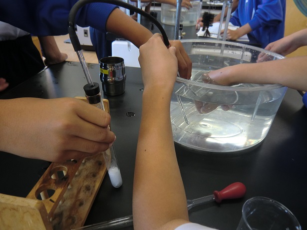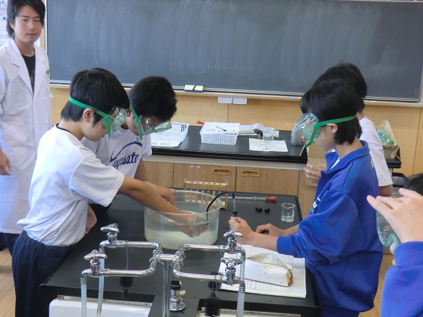薬品を使った気体発生の実験でみんな慎重に実験をしました。