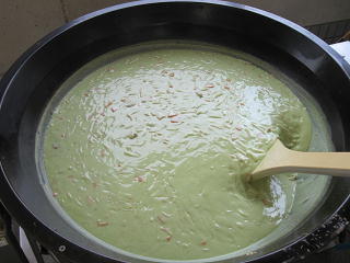 薄い鮮やかな緑色のクリームは、旬のグリンピースが入った