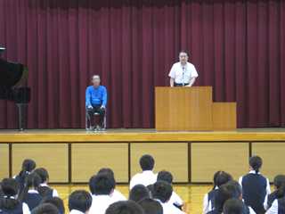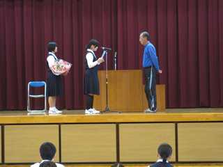 本日(26日)の朝、体育館で用務員の髙橋さんのお別れ会を行いました。