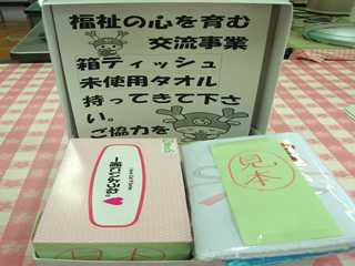 つきましては、学校として施設に寄付をする予定の「タオルやティッシュ」を現在、集めています。