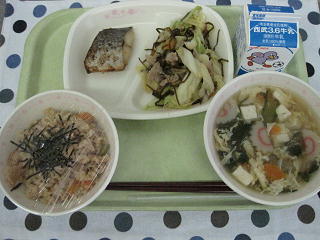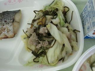 23日(木)の給食 (新)キャベツと塩昆布のソテー