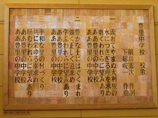 ★創立30周年当時の豊里中学校 ★体育館に掲示されている校歌(H12年度制作)