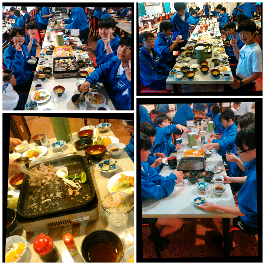 夕食は焼き肉です。おかわりの肉の皿も瞬く間になくなるほど、みんな食欲旺盛です。