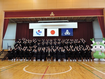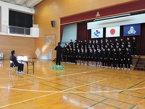 本日、市長との対話会が体育館で行われました。3年生から出された5つの質問に対し、小島市長に熱く、丁寧に答えていただきました。まずは、市長も大好きだという「あなたへ」を学年合唱でお出迎え。その後ふっかちゃんと記念撮影。