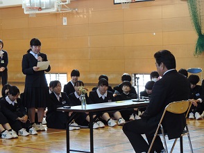 一つ一つの質問に丁寧に答えてくださる市長に対し、生徒たちも真剣に話を聞く