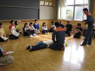 講師は、深谷消防本部豊里分署の隊員の方々で、PTA保健委員の皆様と本校職員が