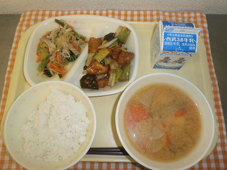 今日の給食の「ふっかちゃんの絆やきとり」と「深谷ネギのナムル」のねぎは、