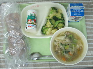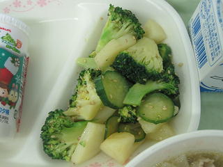 <黒糖揚げパン> <生のブロッコリーを使ったサラダ>