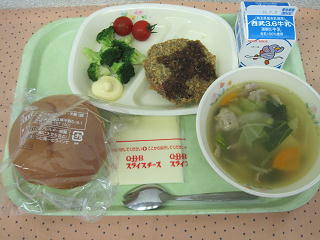 27日(金)の給食 ハムカツ(勝つ)サンド