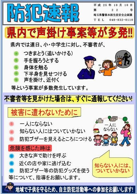 埼玉県警より、防犯速報第22号が送付されました。