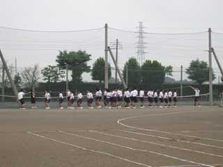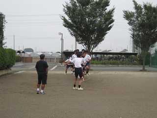 組んでいます。昨日の雨でグランドが少しぬかるんでいるために、乾いているところで