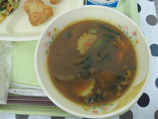 いただきました。カレーうどんは生徒にとても大人気の料理です。