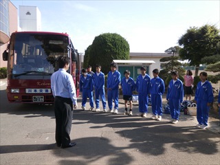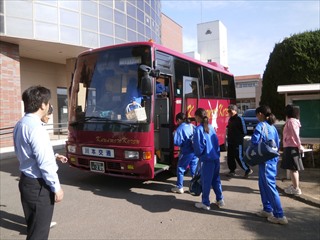 本校からも出場する生徒たちが、バスで出発しました。出場する選手のみ